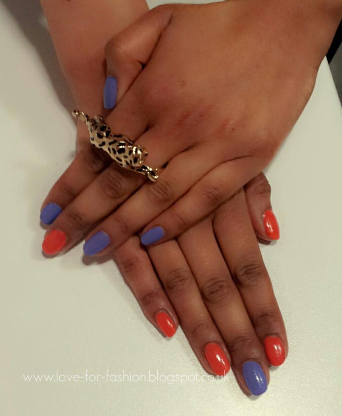 I had to try out the nail colours, I do love painting my nails and I do love the orange and purple colour. Rather than painting all your nails the same colour I recommend thinking outside the box and mixing and matching the colours, like what I have done that can seen in the picture below.